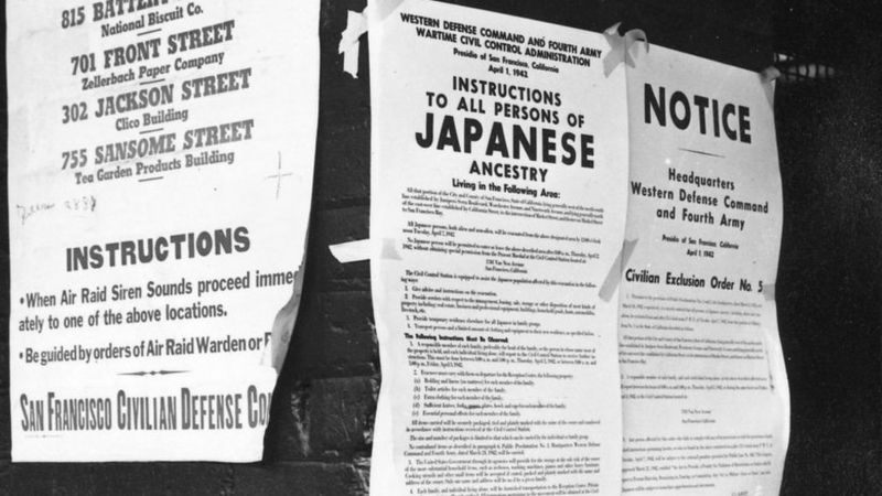Los migrantes y sus descendientes que estuvieran en la costa oeste de EE.UU., "considerados una amenaza para la seguridad nacional", debían ser llevados a una treintena de campos de "internamiento" lejos del Pacífico.